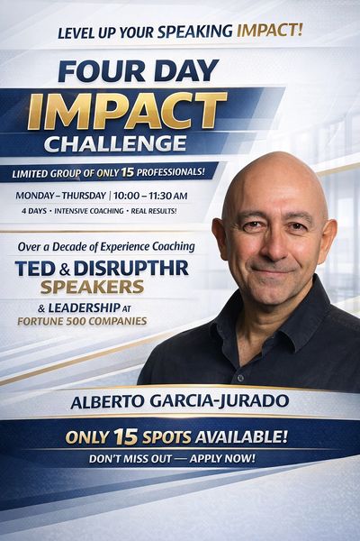 My Impact Challenge equips you to shine and engage when speaking to any group, and convey clear messages that lead to actual results. Just like I've done for TED and DisruptHR speakers for over eight years.